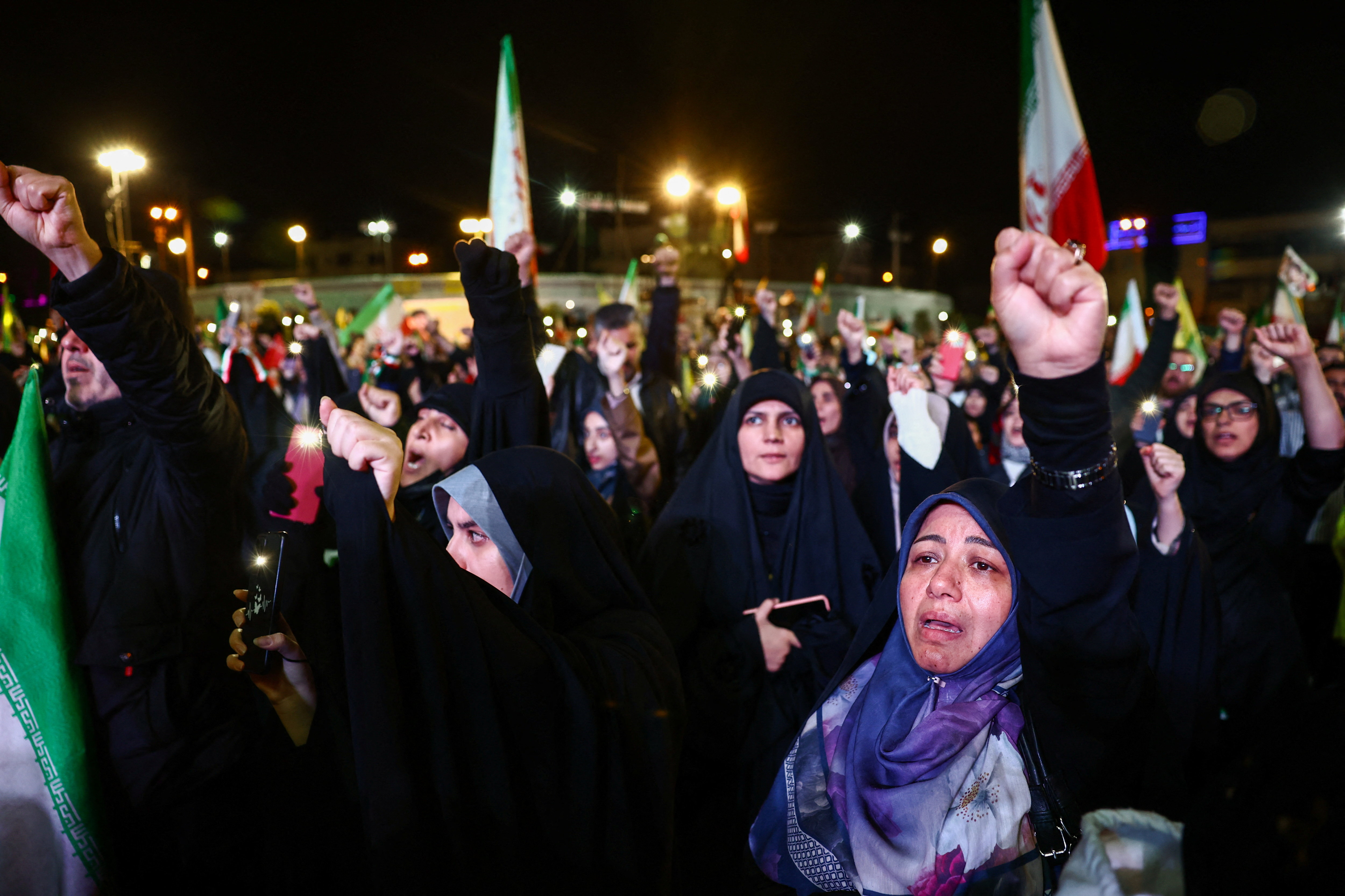 ईरान के समर्थन में प्रदर्शन कर रहे लोग