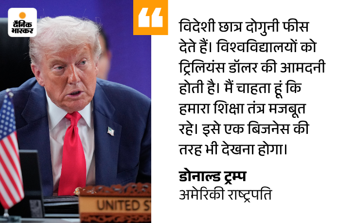 ट्रम्प ने कहा कि दुनियाभर से आने वाले आधे छात्रों को नहीं रोक सकते, ऐसा किया तो हमारे कॉलेज-यूनिवर्सिटी सिस्टम को भारी नुकसान होगा। मैं ऐसा नहीं चाहता। मैं मानता हूं कि बाहर के देशों से छात्रों का आना अच्छा है, मैं दुनिया से रिश्ते बेहतर रखना चाहता हूं।