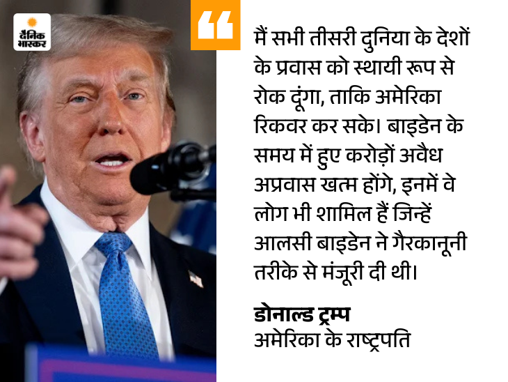 28 नवंबर को ट्रम्प ने कहा था कि वह ‘थर्ड वर्ल्ड कंट्रीज’ से आने वाले शरणार्थियों को हमेशा के लिए रोक देंगे, ताकि अमेरिका फिर से मजबूत हो सके। ट्रम्प ने कहा था कि इमिग्रेशन पॉलिसी की वजह से देश के लोगों की जिंदगी बदतर हो चुकी है।
