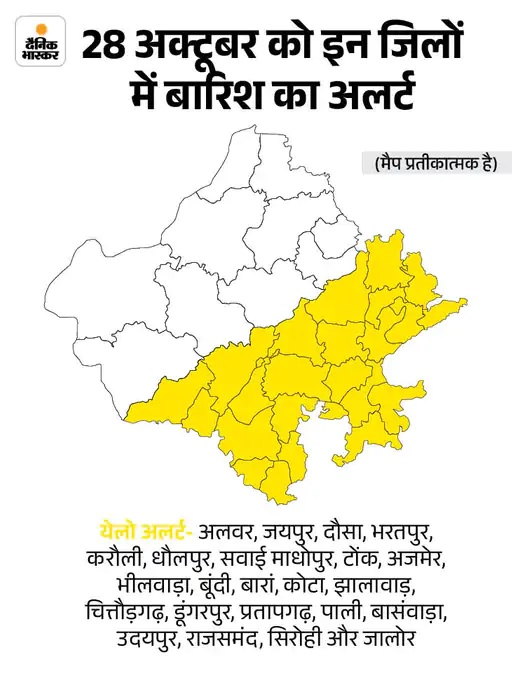 - बीते चौबीस घंटे के दौरान उदयपुर के मावली में 12, कुराबड़ में 19, लसाड़िया में 35, सलूंबर जिले के सराडा में 30, झल्लारा में 39, सलूंबर में 16 MM बारिश दर्ज की गई है।