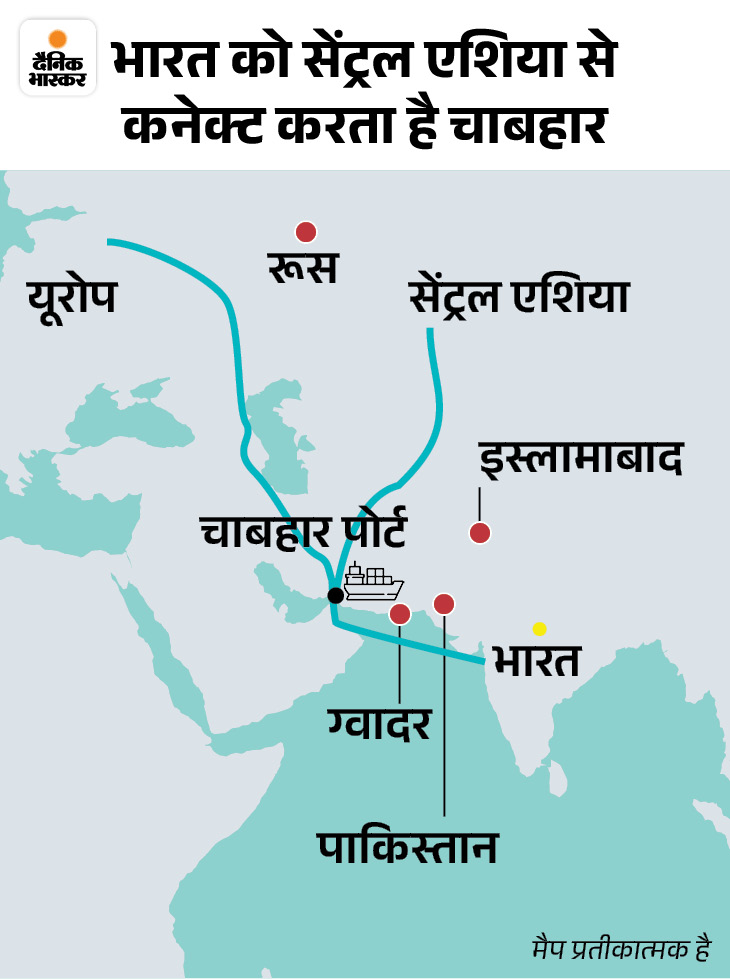 चाबहार बंदरगाह भारत को अफगानिस्तान, मध्य एशिया, रूस और यूरोप से सीधे व्यापार करने में मदद करता है।