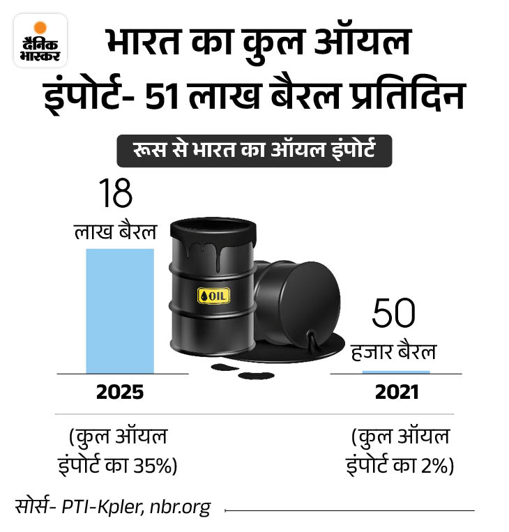 ट्रम्प ने भारत पर कुल 50% टैरिफ लगाया है, जिसमें से 25% टैरिफ जुर्माने के तौर पर लगाया गया है, जो 27 अगस्त यानी कल से लागू होगा। ट्रम्प का कहना है कि भारत के रूसी तेल खरीदने की वजह से पुतिन को यूक्रेन के खिलाफ जंग जारी रखने में मदद मिल रही है।