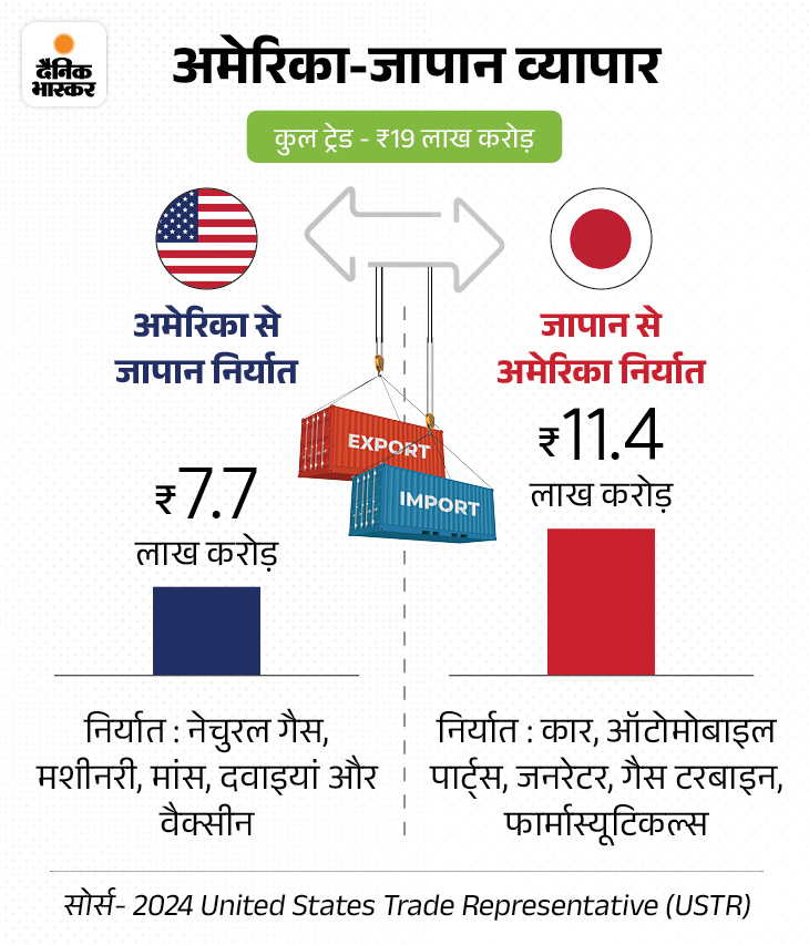 ट्रम्प चाहते हैं कि जापान अमेरिका में चिप्स, दवाइयां, जहाज और एनर्जी जैसे सेक्टर में पैसा लगाए। इससे अमेरिका में नौकरियां बढ़ेंगी और दोनों देशों के रिश्ते मजबूत होंगे।
