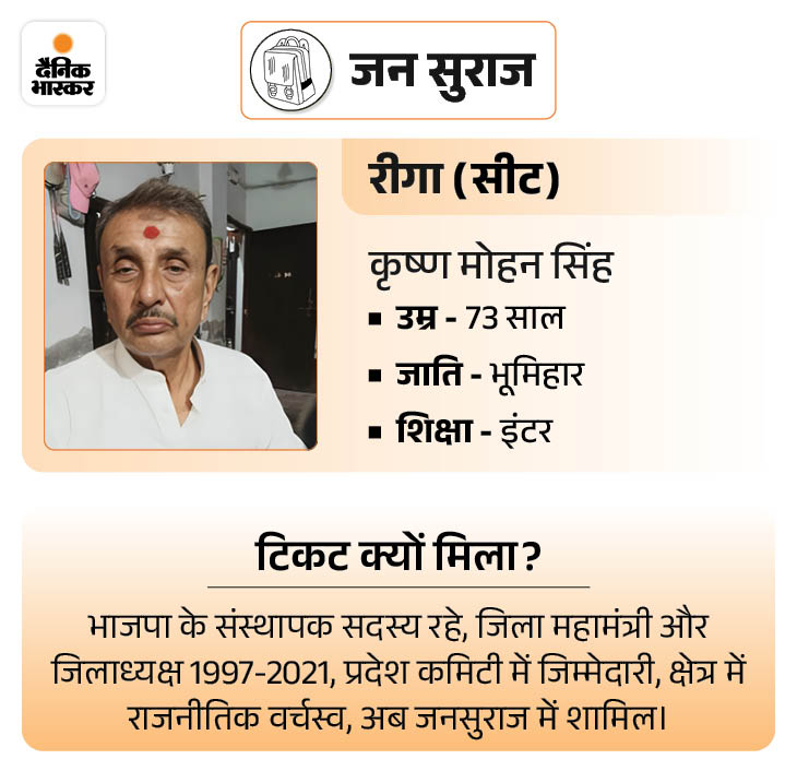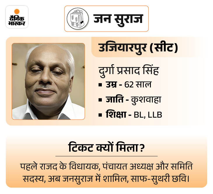 सत्येंद्र हाजरा- सोनवर्षा सीट से जनसुराज की तरफ से सत्येंद्र हाजरा को कैंडिडेट बनाया गया है। 64 साल के हाजरा 4 बार कांग्रेस के टिकट पर विधायक रहे हैं। इमानदार छवि के हैं।