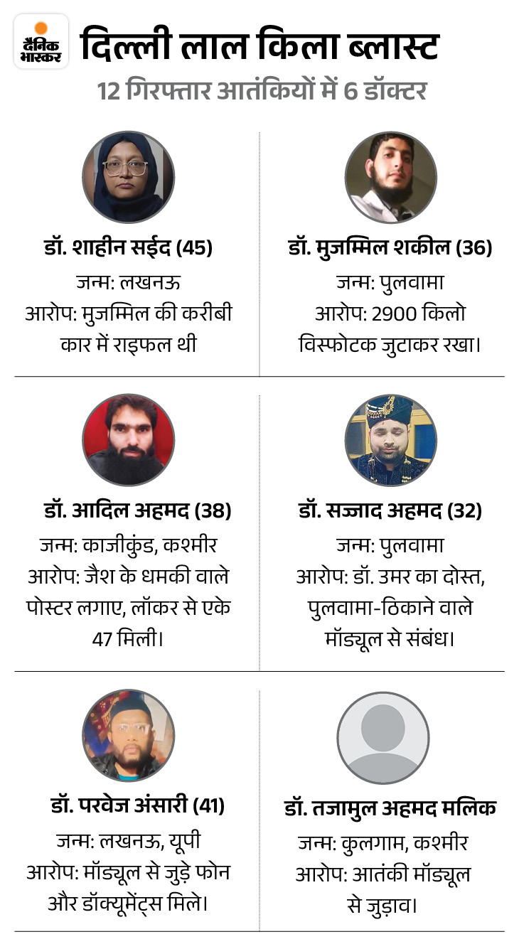 दिल्ली में लाल किला के पास 10 नवंबर को हुए धमाके के पीछे जैश-ए-मोहम्मद का नया वाइट कॉलर टेरर मॉड्यूल (आतंकियों का ग्रुप) उजागर हुआ है। इस मॉड्यूल में डॉक्टर, प्रोफेसर और महिला सदस्य शामिल थे, जो पाकिस्तानी हैंडलर्स के सीधे संपर्क में थे।