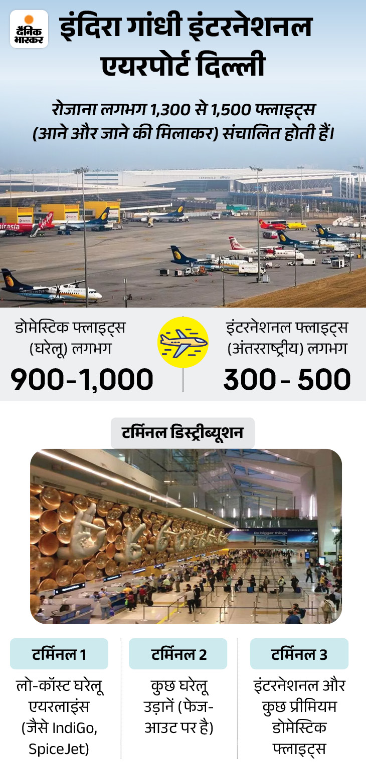 दिल्ली एयरपोर्ट से रोजाना लगभग 1300 से 1500 फ्लाइट्स संचालित होती है।