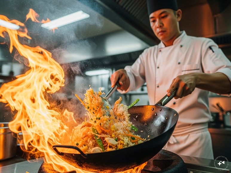 दूसरी महत्वपूर्ण चीज है तेज़ आंच. शेफ हमेशा हाई फ्लेम पर फ्राइड राइस बनाते हैं. इससे सब्जियों की क्रंच बनी रहती है और चावल जल्दी फ्राई हो जाता है. अगर आंच धीमी रहेगी तो राइस गीला और चिपचिपा हो जाएगा. वोक या बड़े पैन का इस्तेमाल इसी वजह से किया जाता है ताकि सारी सामग्री को अच्छी तरह टॉस किया जा सके.