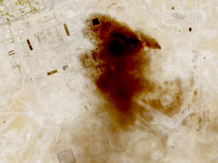 सैटेलाइट तस्वीर में सऊदी की तेल पाइपलाइन में लगी आग दिखी