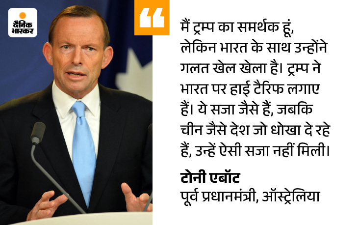 ऑस्ट्रेलिया के पूर्व प्रधानमंत्री टोनी एबॉट ने शुक्रवार को कहा कि अमेरिकी राष्ट्रपति डोनाल्ड ट्रम्प ने भारत पर भारी टैरिफ लगाकर गलत किया है।’ उन्होंने कहा, ‘पिछले 20 सालों में अमेरिका ने इस गलती को सुधारने की कोशिश की थी, लेकिन ये टैरिफ बड़ा झटका हैं।’