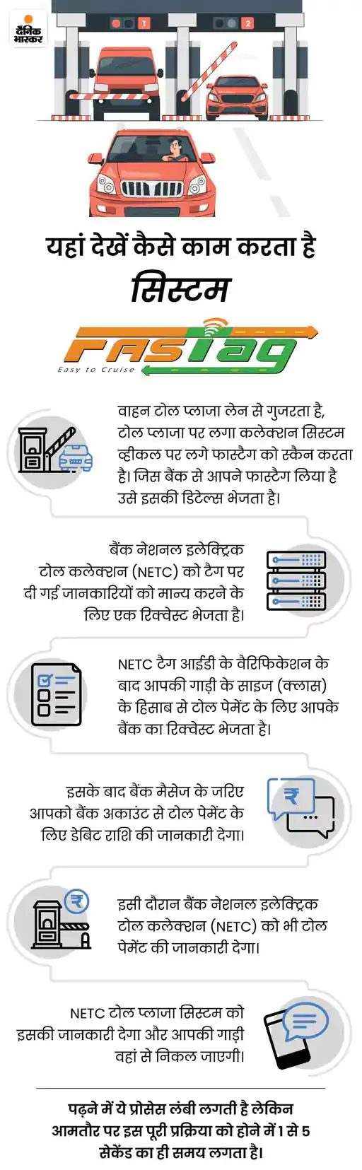 इसके लिए छह महीने से जारी ट्रायल सफल रहा है। इसका उद्देश्य है कि फास्टैग का उपयोग सिर्फ टोल भुगतान तक सीमित न रहे, बल्कि यात्रा के दौरान सड़क से इतर मिलने वाली सुविधाओं के भुगतान में भी हो।