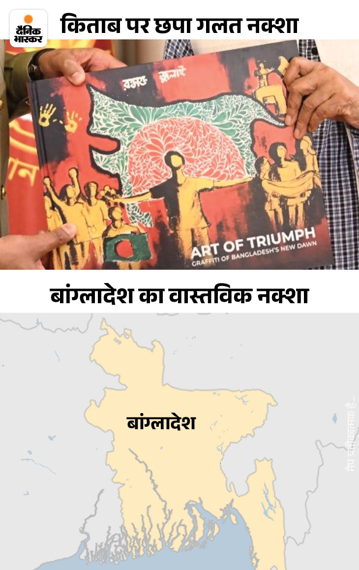 ‘आर्ट ऑफ ट्रायम्फ’ नाम की इस किताब के कवर पर छपे नक्शे में भारत के पूर्वोत्तर राज्यों को बांग्लादेश का हिस्सा दिखाया गया है। भारतीय विदेश मंत्रालय ने अभी तक इस पर कोई आधिकारिक प्रतिक्रिया नहीं दी है।