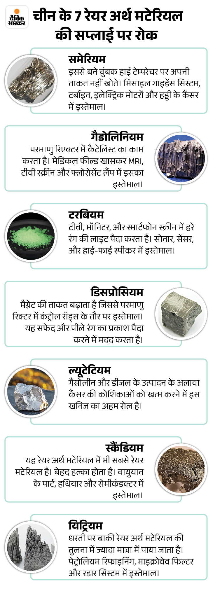 इससे पहले अप्रैल में चीन ने सात रेयर अर्थ मटेरियल के एक्सपोर्ट पर सख्त पाबंदियां लगा दी थीं। इनके आयात के लिए स्पेशल लाइसेंस जरूरी कर दिया था। इसकी वजह से भारत को होने वाली सप्लाई रुक गई।