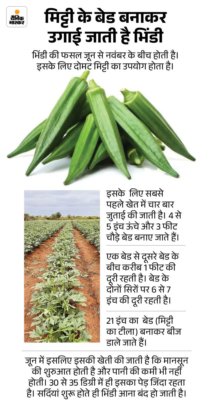 भिंडी की खेती जून से लेकर नवंबर तक होती है। छह महीने के समय में लाखों का मुनाफा हो जाता है।