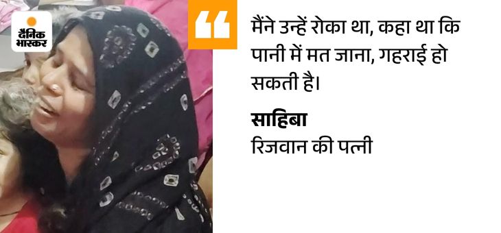 पत्नी बोली- मना किया था पानी में मत जाना रिजवान की पत्नी साहिबा ने भास्कर को बताया- मंगलवार की सुबह ही उनका कॉल आया था। मैंने पूछा अब क्या प्लान है, तो बोले- गर्मी बहुत है, हम नहाने जा रहे हैं। तब मैंने कहा था कि पानी में मत जाना, गहराई हो सकती है। मैं जानती थी कि उन्हें तैरना नहीं आता। अच्छे से सावधान किया था कि उस नदी में गाद या मगरमच्छ भी हो सकते हैं।