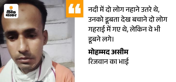 असीम ने बताया- मुझे जो जानकारी अब तक मिली है उसके अनुसार सबसे पहले बनास नदी में दो लोग नहाने उतरे थे। उनको डूबता देख उन्हें बचाने दो लोग गहराई में गए। वे भी डूबने लगे। फिर एक के बाद एक बचाने के लिए नदी में कूद गए। उनमें से 8 लोगों की डूबने से मौत हो गई।