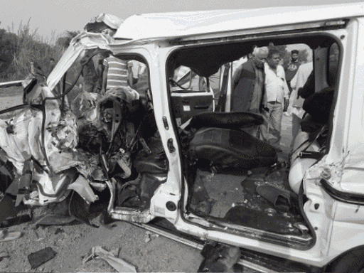 खाटूश्यामजी जा रहे लोगों की कार-ट्रक से भिड़ी,4 की मौत:गाड़ी के उड़े परखच्चे, चिपक गए शव; ओवरटेक करते समय हुआ हादसा
