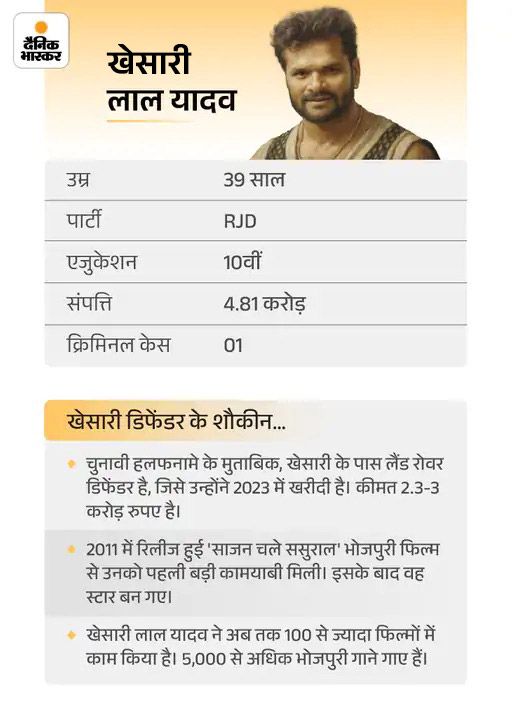 खेसारी लाल यादव छपरा से राजद के टिकट पर चुनाव लड़ रहे हैं। अखिलेश यादव ने भी छपरा में उनके समर्थन में रैली की थी।