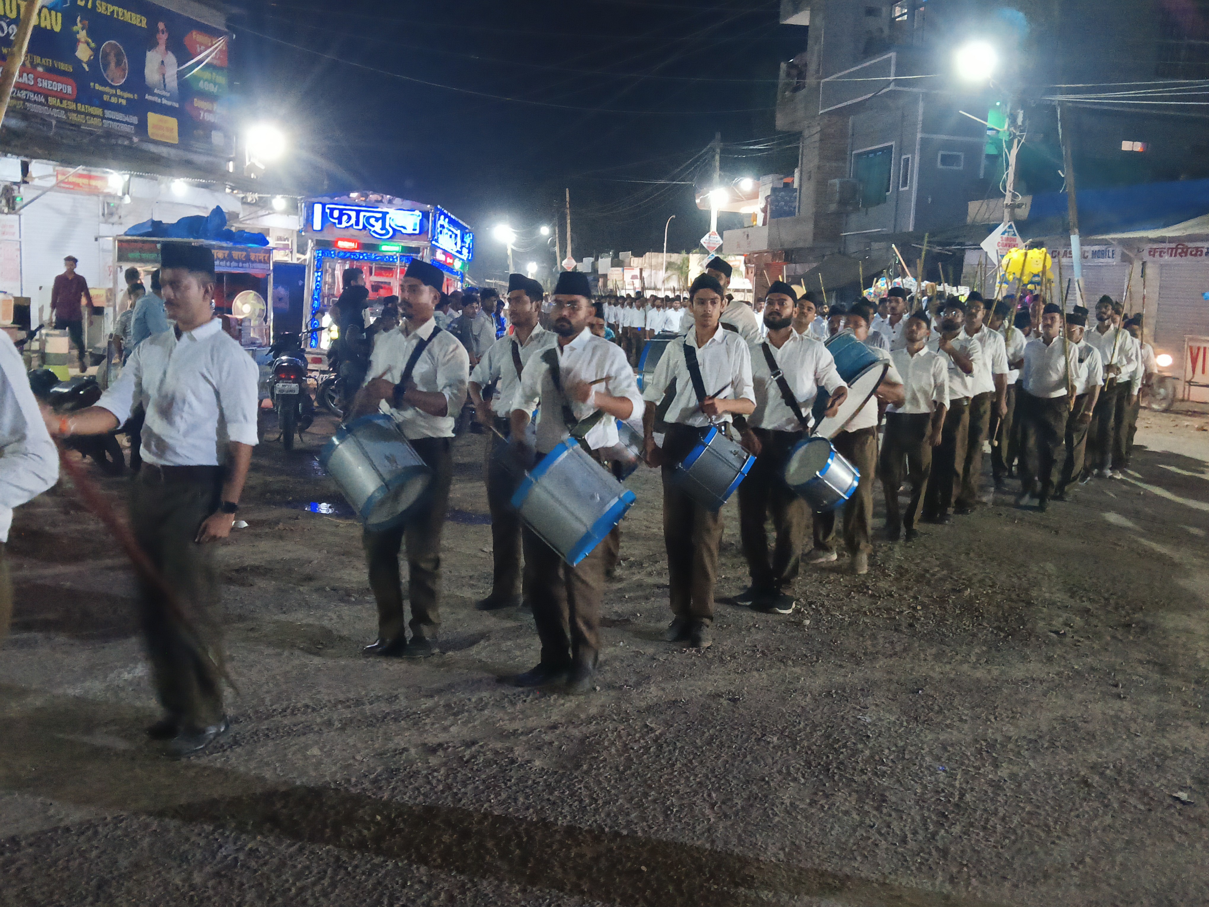 कार्यक्रम के बाद रात 8 बजे कौमुदी पथ संचलन का आयोजन हुआ। मेला मैदान से प्रारंभ हुआ यह संचलन पुराना बस स्टैंड से होते हुए बड़ौदा रोड पहुंचा। स्वयंसेवक घोष वाद्य की थाप पर गणवेश में मार्च करते दिखे। संचलन पुल दरवाजा, गणेश बाजार, मुख्य बाजार और गांधी पार्क से होकर श्रीरामतलाई हनुमान मंदिर क्षेत्र तक पहुंचा।