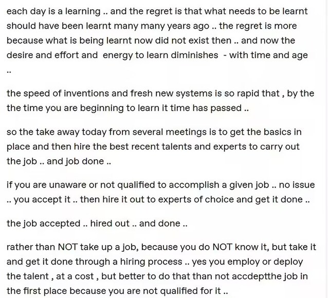 एक्टर अपने ब्लॉग में लिखते हैं, हर दिन एक नई सीख है औऱ इसके साथ ही ये अफसोस भी कि जो कुछ अब सीख रहा हूं वो काश पहले सीख लिया होता. ये पछतावा ज्यादा है क्योंकि पहले ये चीजें थी ही नहीं. अब बढ़ती उम्र के साथ ये अफसोस और बढ़ते ही जा रहा है क्योंकि सीखने की क्षमता कम होती जा रही है. वो आगे लिखते हैं कि नई डिस्कवरी और इंवेंशन की स्पीड इतनी ज्यादा है कि जब तक कुछ नया सीखने जाता हूं तब तक वो समय बीत जाता है.