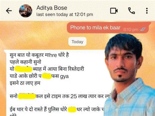 11 दिसंबर थाना जाते समय फिरौती और मारपीट की वीडियो आया करीब 12 बजे परिवार दोबारा शिकायत दर्ज कराने के लिए निकला। लेकिन गांव की गोशाला के पास पहुंचते ही फिर से शिवम के मोबाइल पर आदित्य के नंबर से मैसेज आया। इस बार इसमें फिरौती वाली पोस्ट, मारपीट की वीडियो और चोटों के निशान वाली फोटो भेजी गई। परिवार घबरा गया और गांव के मौजिज लोगों के साथ थाने पहुंचकर पुलिस को सारी बातें बताईं। पुलिस ने गुमशुदगी की रिपोर्ट दर्ज कर ली।
