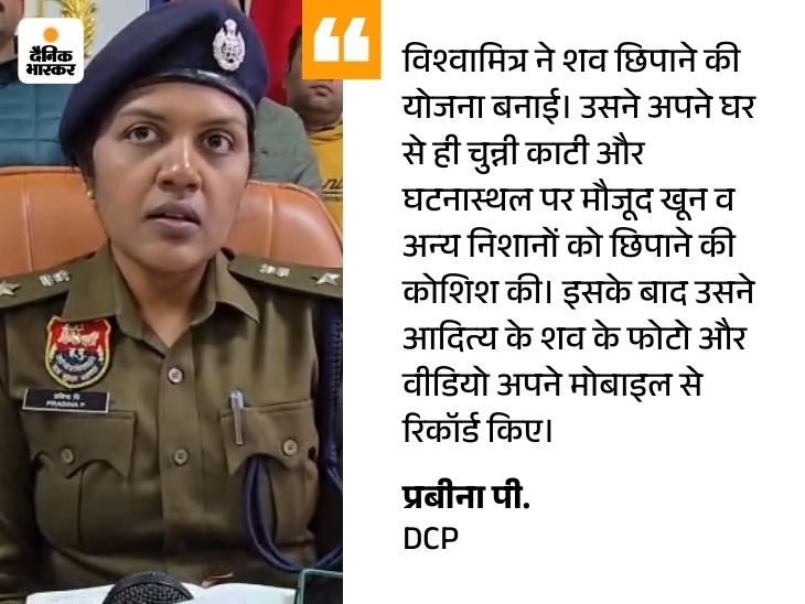 - आधे घंटे बाद ही रॉड मारकर हत्या की: DCP ने बताया कि आदित्य करीब 2 बजे अपने घर से विश्वामित्र के घर के लिए निकला था। इसके लगभग आधे घंटे के भीतर करीब 2:30 बजे विश्वामित्र ने आदित्य की हत्या कर दी। दोनों के बीच पहले से पैसों का लेन-देन था। ₹20 हजार देने की बात को लेकर दोनों में कहासुनी और गाली-गलौज हुई। आदित्य का सिर लोहे की ग्रिल से टकराया, जिसके बाद गुस्से में आकर विश्वामित्र ने लोहे की रॉड से उसके सिर पर कई वार किए, जिससे मौके पर ही आदित्य की मौत हो गई।