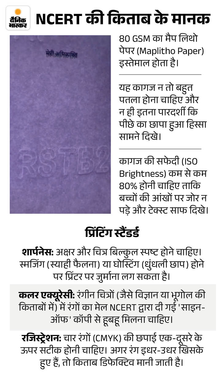 सरकारी आदेशों के तहत राजस्थान पाठ्यपुस्तक मंडल 80 GSM का पेपर काम में लेता है और स्याही भी क्वालिटी की यूज की जाती है। लेकिन बाजार में उसकी नकल को घटिया क्वालिटी पर बेचा जा रहा है।