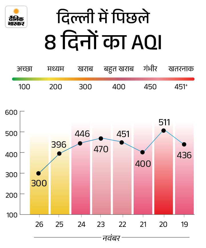 हवा में पॉल्यूटेंट्स की मात्रा जितनी ज्यादा होगी, AQI का स्तर उतना ज्यादा होगा और जितना ज्यादा AQI, उतनी खतरनाक हवा। वैसे तो 200 से 300 के बीच AQI भी खराब माना जाता है, लेकिन अभी हालात ये हैं कि राजस्थान, हरियाणा दिल्ली और उत्तर प्रदेश के कई शहरों में ये 300 के ऊपर जा चुका है। ये बढ़ता AQI सिर्फ एक नंबर नहीं है। ये आने वाली बीमारियों के खतरे का संकेत भी है।