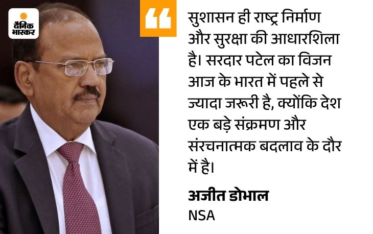 एनएसए ने कहा कि 2025 में सरदार पटेल के विजन को नए सिरे से समझने की जरूरत है। उन्होंने दिखाया था कि कैसे एक मजबूत और निष्पक्ष शासन व्यवस्था ही विविधताओं से भरे देश को एकता में बांध सकती है।