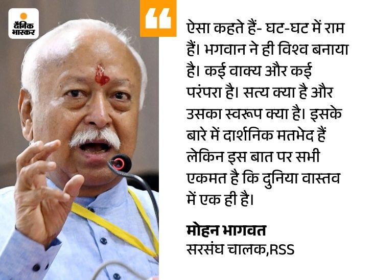 मोहन भागवत ने कहा- यहां से प्रेरणा लेकर संपूर्ण देश में विचरण करने वाले हमारे संतों का है। बाकी दुनिया में बहुत सारी पूजा पद्धतियां है, अच्छी है लेकिन पूजा पद्धति को अनुसरण करने वाले अगर पूछेंगे कि यह जो आप बता रहे हो वह प्रत्यक्ष दिखाओ, तो लोगों के पास कोई जवाब नहीं होगा।